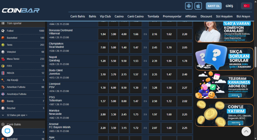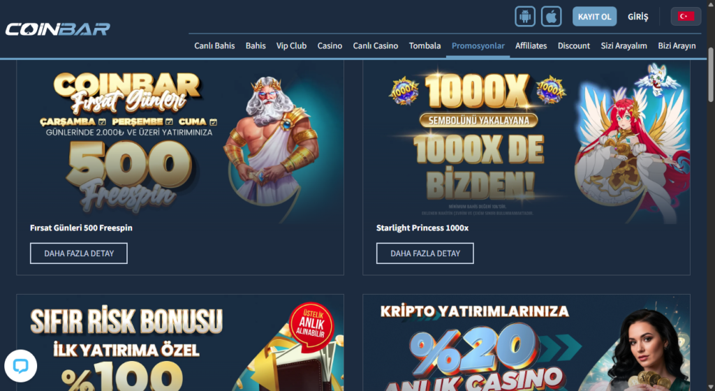 Coinbar, geniş oyun yelpazesi ile dikkat çekiyor. Kullanıcılar, birçok farklı oyun arasından seçim yapabilir. Ayrıca, kullanıcı dostu arayüzü sayesinde oyun oynamak oldukça kolaydır. Coinbar, mobil uyumluluğu ile de avantaj sağlar. İstediğiniz her yerden oyun oynama imkanı sunar.
